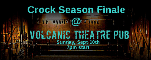 Come join us for the CROCK Summer 2017 season finale this Sunday (Sept 10th) a the Volcanic Theatre Pub in the Century Center.